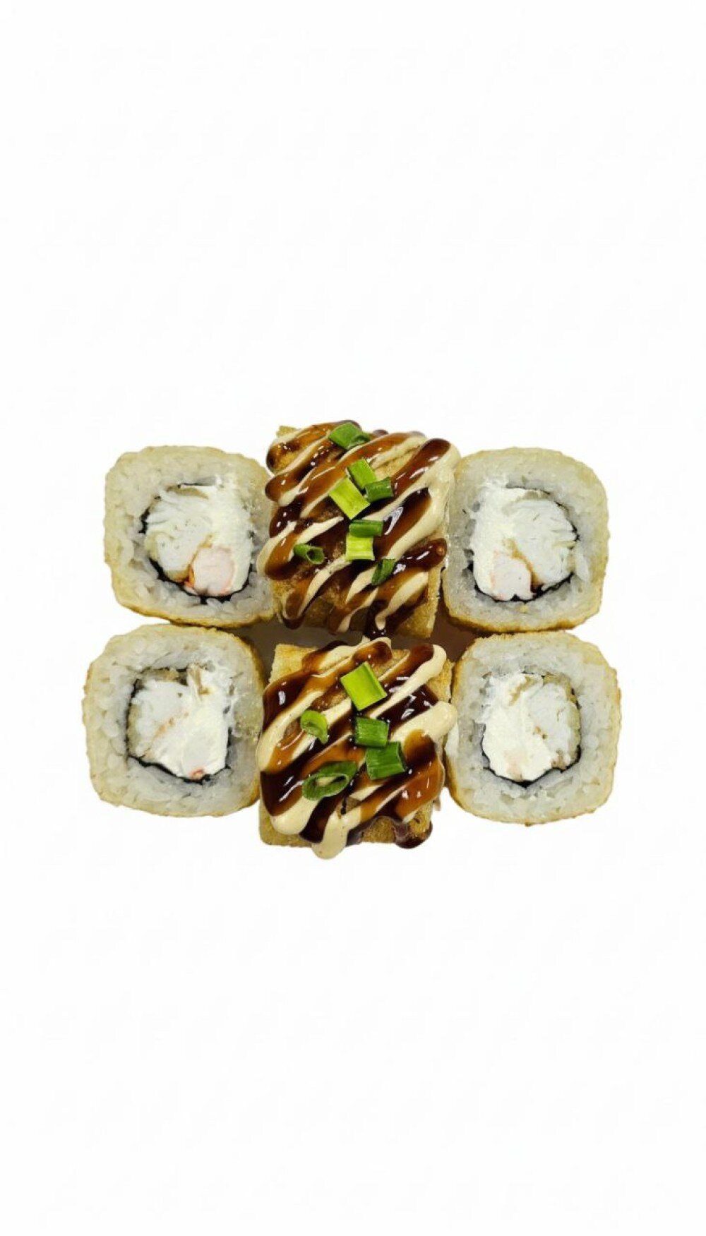 Снежный краб, сыр, креветка, панко, соус унаги, соус цезарь, зеленый лук